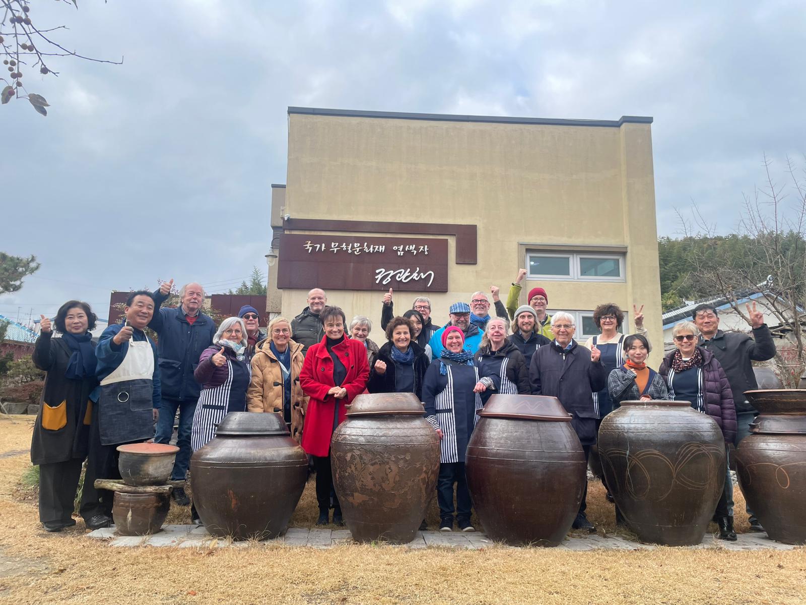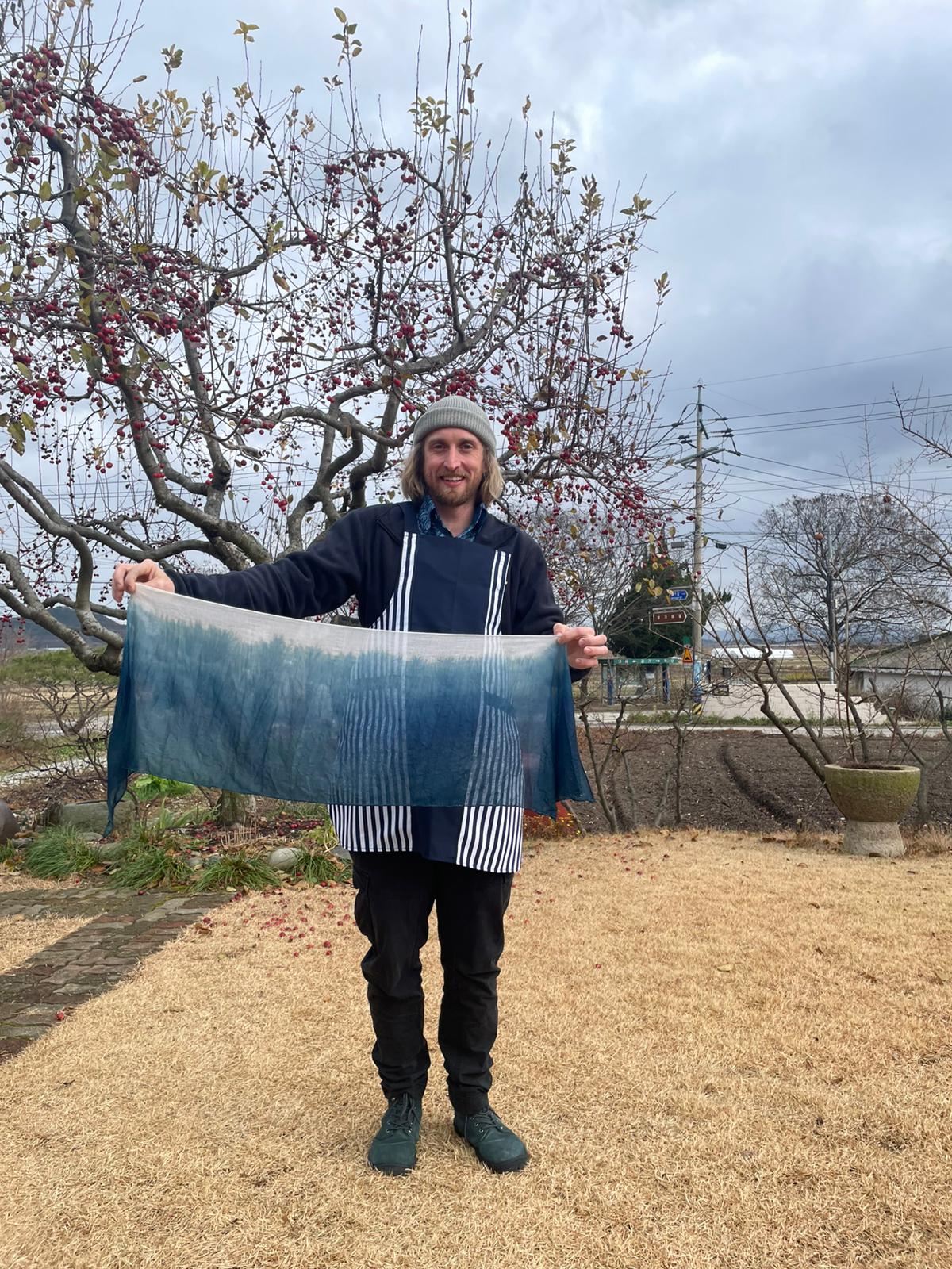 Unsere koreanischen Gastgeber hießen uns sehr offen willkommen und ermöglichten uns tiefe Einblicke in die vielfältige Kultur und Geschichte des Landes. Ein besonderer Höhepunkt war der Besuch eines renommierten Färbemeisters in Naju. Diese Region gilt historisch als Zentrum der koreanischen Naturfärbung: Der Yeongsan-Fluss und die idealen klimatischen Bedingungen bieten seit Jahrhunderten beste Voraussetzungen für den Anbau der Indigo-Pflanze Jjok. Der Meister zeigte uns sein traditionelles Handwerk mit großer Hingabe – ein Austausch, der uns nachhaltig beeindruckt hat.